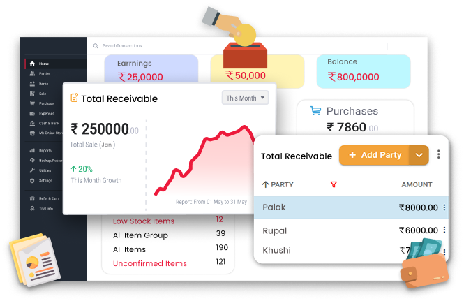 - Effortless Cash Flow Monitoring: Manage accounts receivables and payables by party via a user-friendly dashboard.