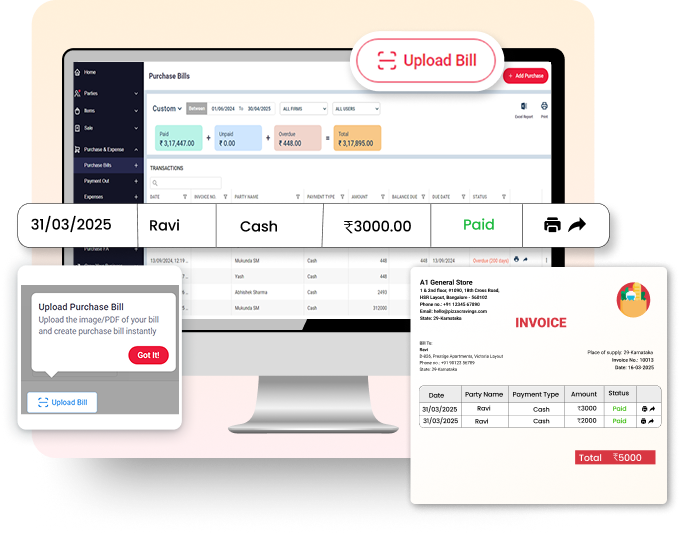 Scan bills, receipts, and documents to auto-capture data into your Vyapar account. Save time, reduce errors, and boost productivity instantly! Try a Free trial Now!